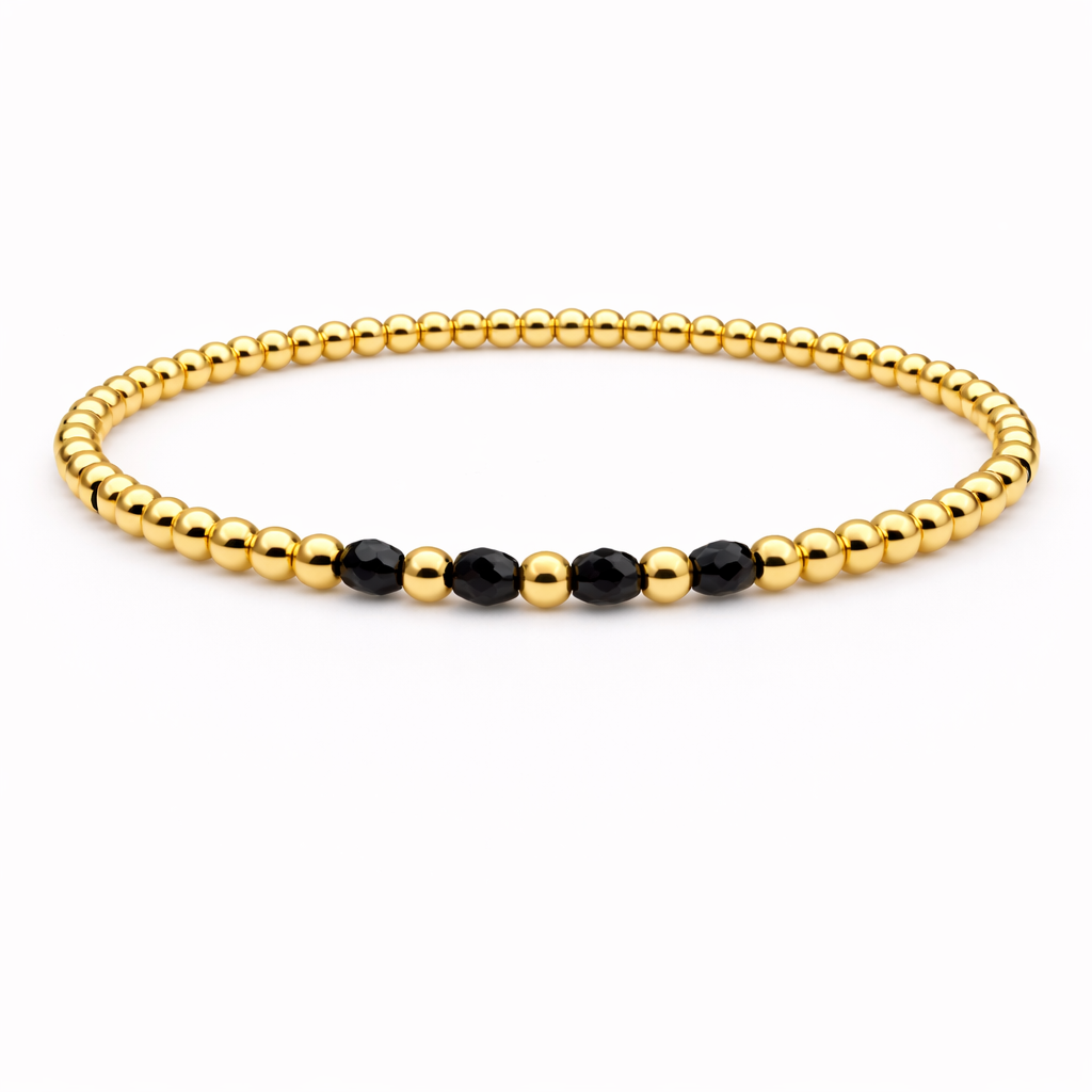 Mooi mix & match armbandje met 4 mm 14 kt vergulde kralen en zwarte facet glaskraaltjes.