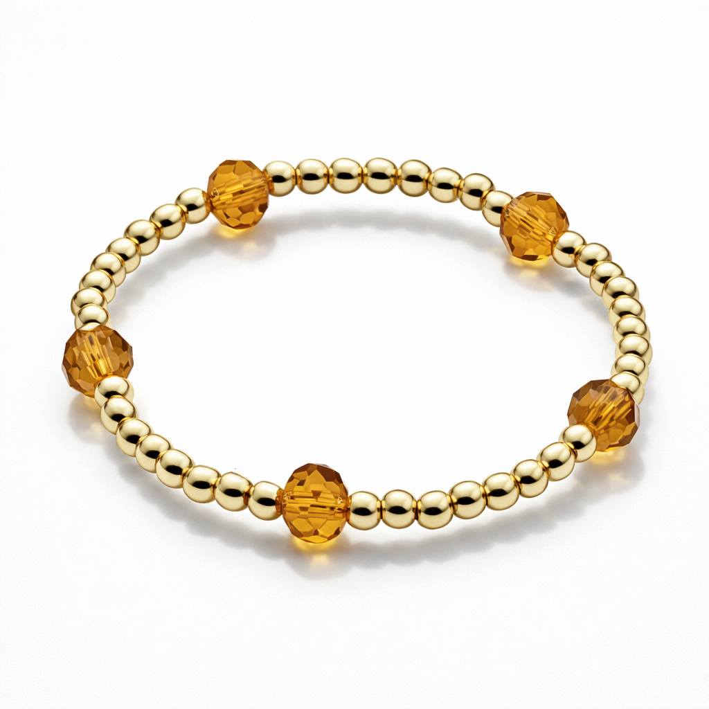 Mooi mix & match armbandje met 4 mm 14 kt vergulde kralen en 8 mm facet glaskralen.