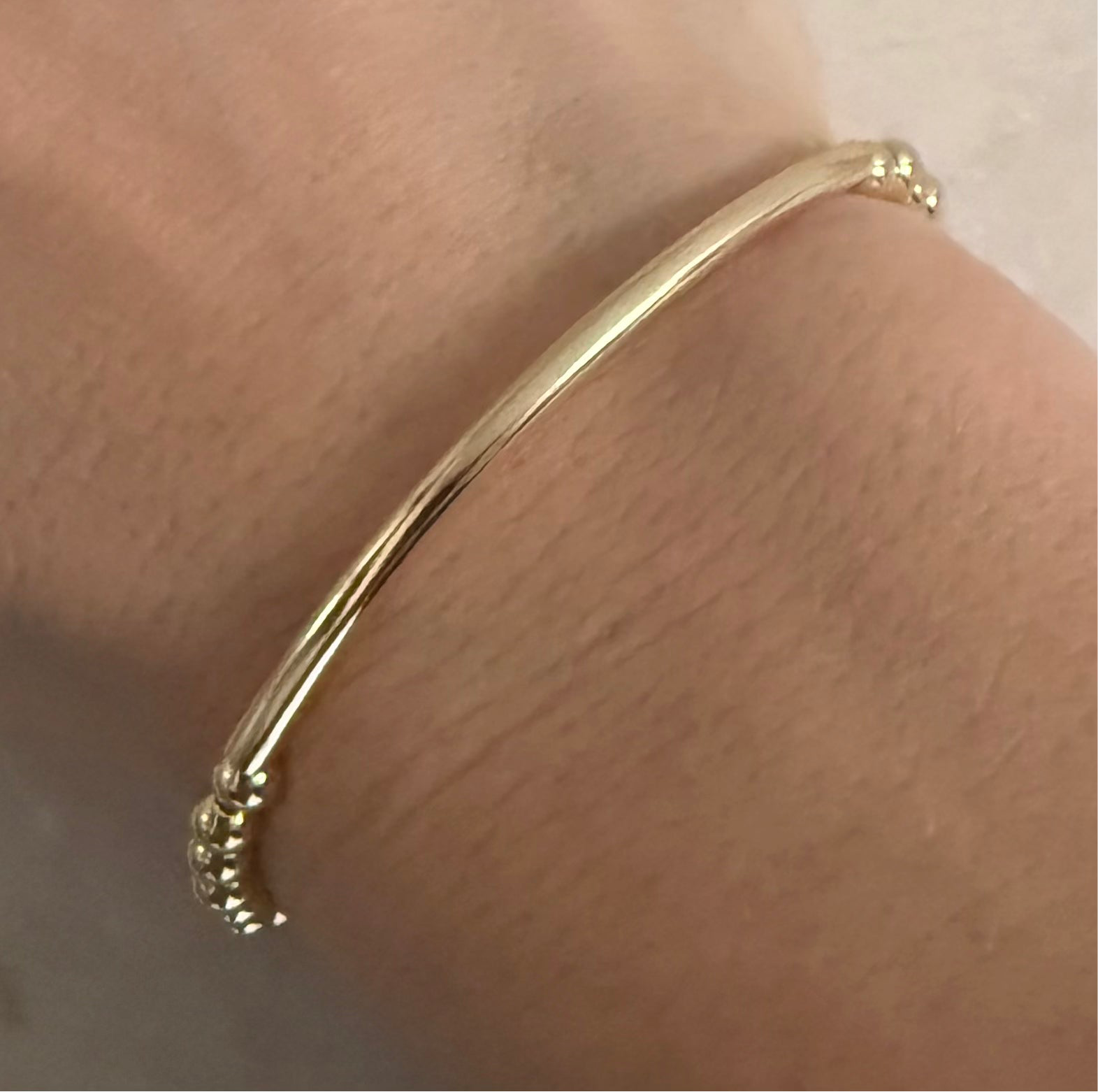 Dit mooie goudkleurige armbandje met 4 mm 14 kt vergulde kralen valt op door de mooie 20 mm 14kt vergulde noedelkraal. Elegant, tijdloos en past bij elke Mix & Match set!