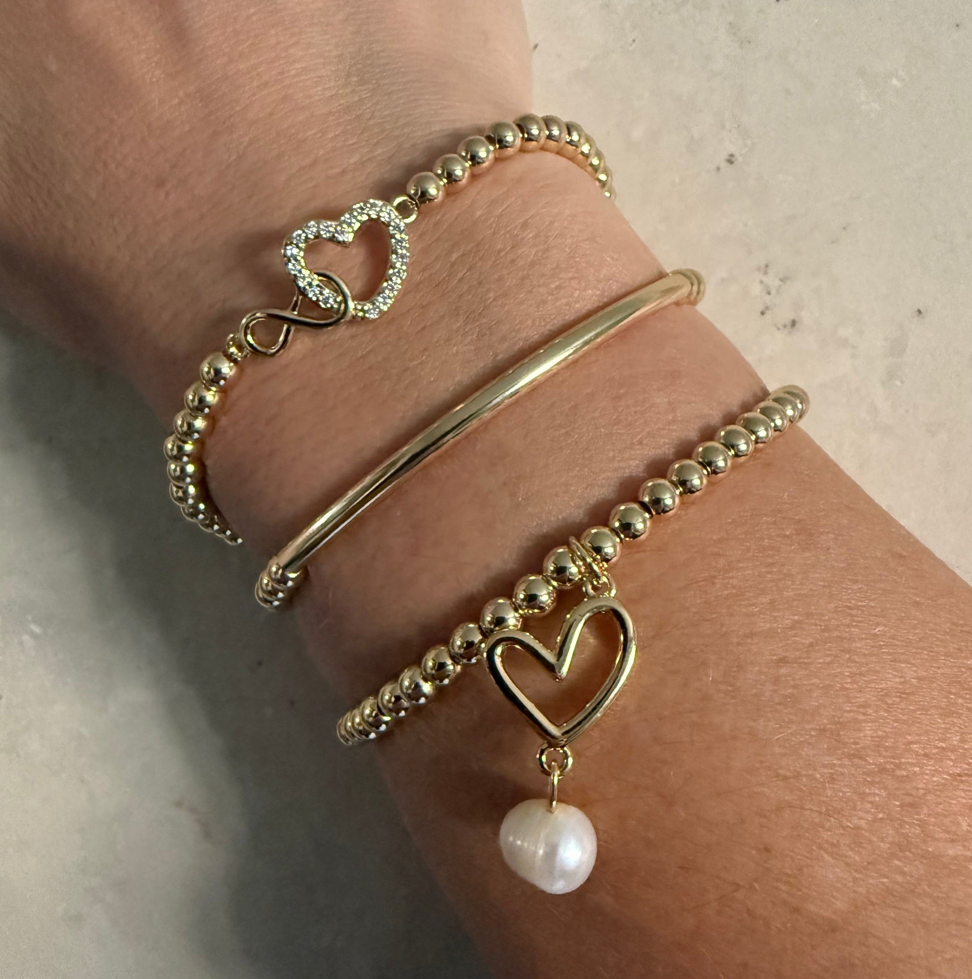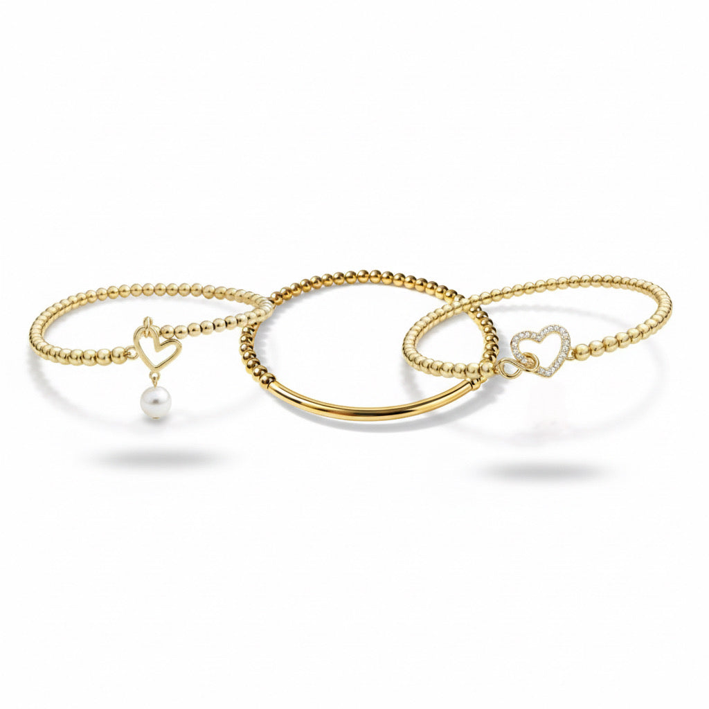 Wat een prachtige liefdevolle set! De 14 kt goldplated kralenarmbanden Forever love, Golden Curve en Lovely Pearl samen. Het perfecte cadeau voor de feestdagen voor een dierbare óf jezelf!